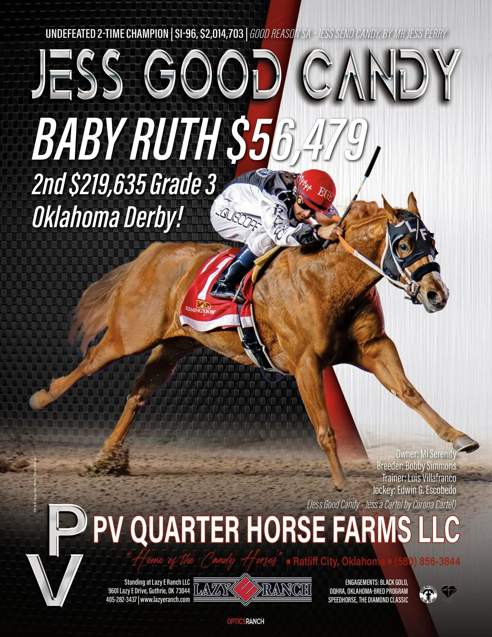 Baby Ruth (Jess Good Candy x Jess A Cartel) finished 2nd in the Grade 3 Oklahoma Derby at Remington Park.